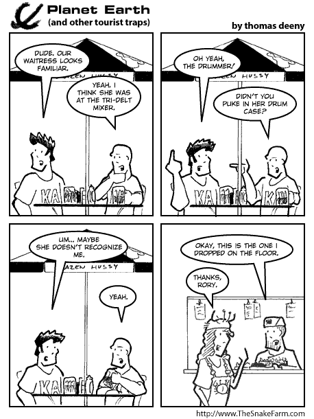 This strip has a reference to Janet Holiday's livejournal, which I wanted to keep doing except this stupid real life thing sort of got in the way. Anyway, her livejournal name is janetholiday if you'd like to read it.