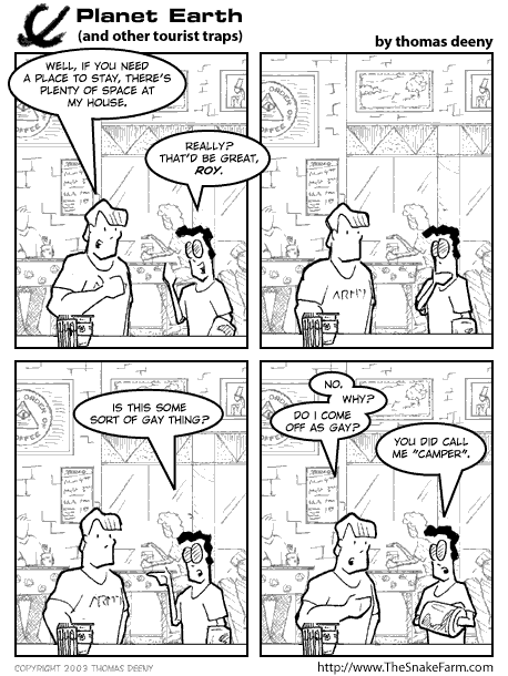 For some reason, nearly everyone posting to the tag board thought that Roy was gay. Even the person who, although she doesn't know it yet, was somewhat responsible for a future (as of this strip) romantic angle that involved Roy in a non-homosexual manner thought he was gay.