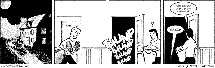There are several reasons why I've decided to go back to the standard newspaper layout for PE(aott), but the most important one I keep coming back to is now I'm actually drawing a strip instead of assembling one in a computer. Back when I drew (the story so far...), I drew the strip. Nowadays I (and other cartoonists) seem to be relying on the computer as a crutch rather than a tool. I didn't draw a comic strip any more -- I drew the same top halves of the characters day after day. Why not just save myself the trouble and just draw them once so I can cut and paste forever?